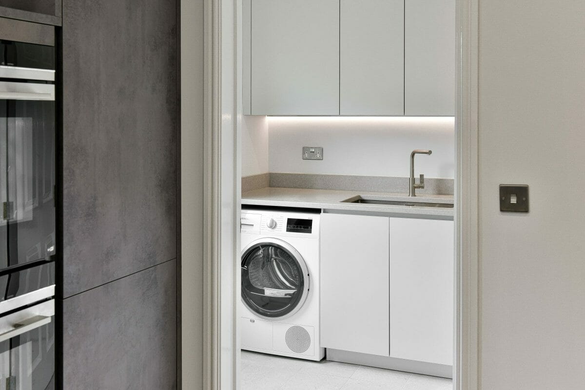 The floor tiles were selected to match the worktop and installed by our tiler through to the hallway to introduce brightness and draw the eye through to the kitchen from the moment you enter the front door.