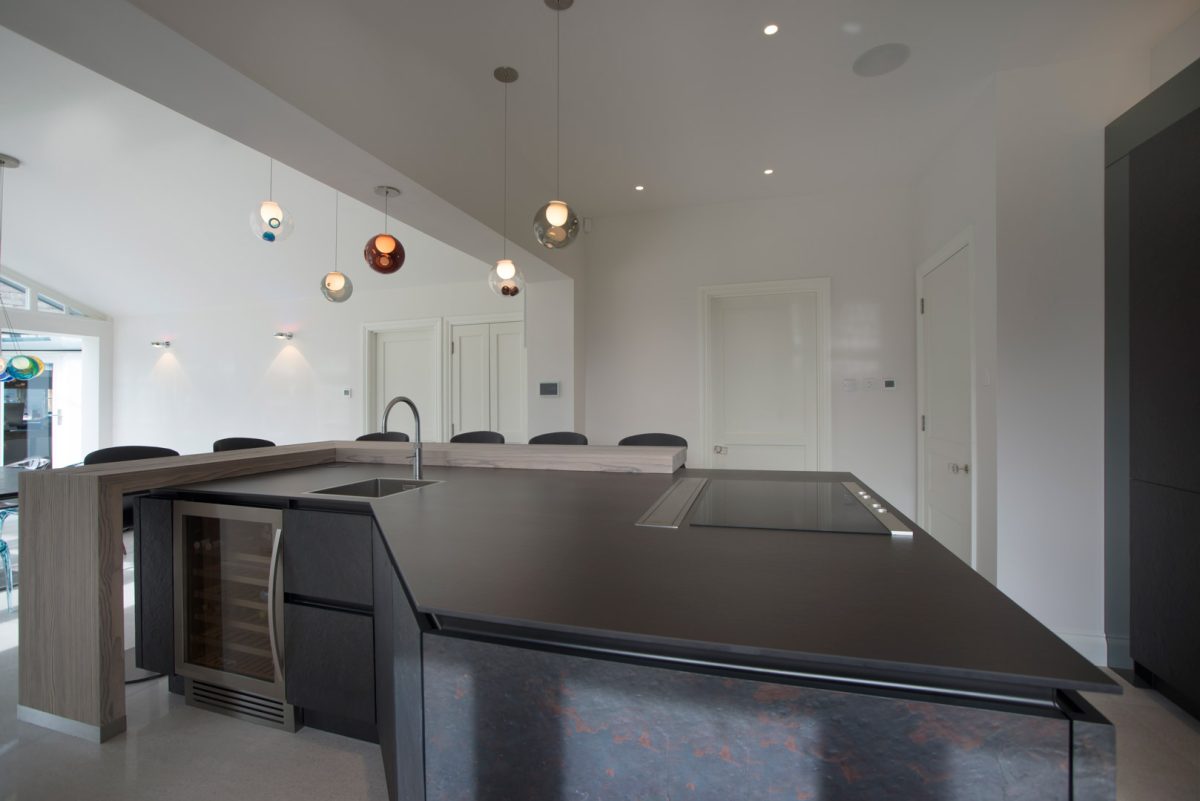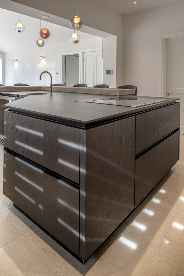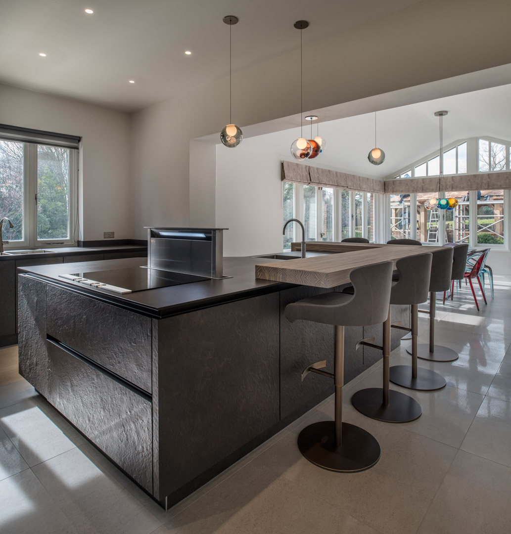 This kitchen is a real statement, the contemporary kitchen design incorporates Siemens appliances and a downdraft extractor on the island to keep the overall design uncluttered which allows for more visual impact.