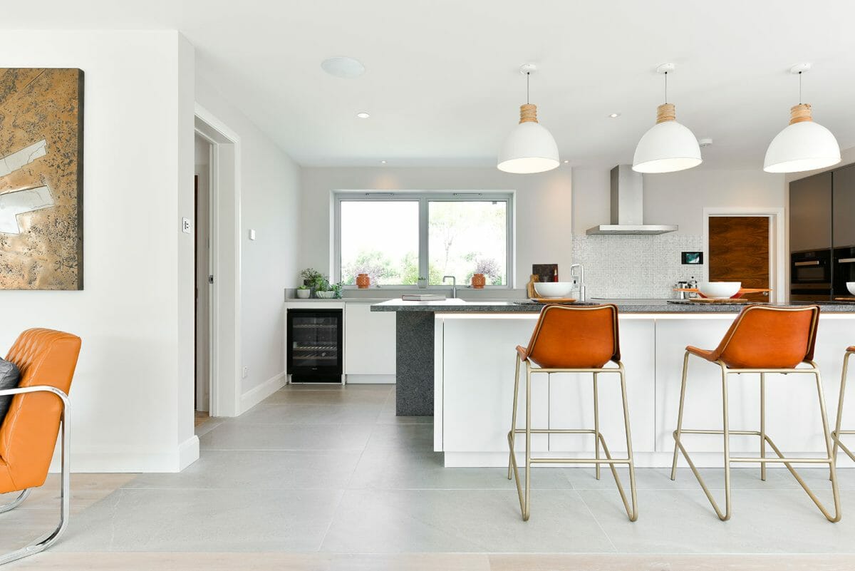 The light colour palette of white and grey was selected to compliment the décor throughout the ground floor. It acts as a calming canvas on to which splashes of colour could be added.